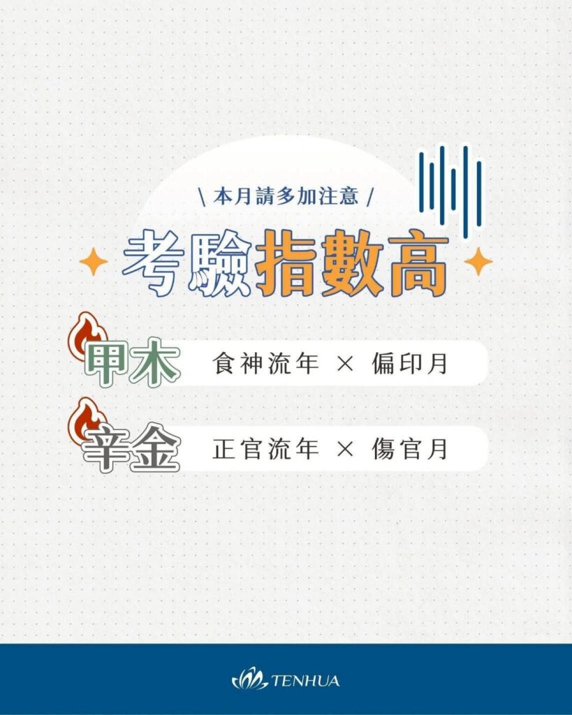 本月為辰刑辰,刑主刑傷與壓力,需特別留意官司糾紛、小人干擾、罰款問題,亦可能出現專業判斷失誤、飲食不潔導致不適,以及自身或家人健康方面的隱憂。此月建議放慢腳步、謹慎行事,避免因急躁而產生失誤。同時需透過命盤分析找出個人喜忌,再進行有方向的調整與化解,或搭配適合的開運方式與工具,以達到避凶趨吉、穩定運勢的效果。