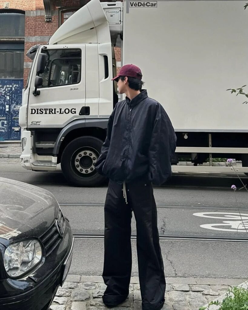 穿搭重點: 版型寬鬆但比例精準,是休閒與潮流的完美平衡。