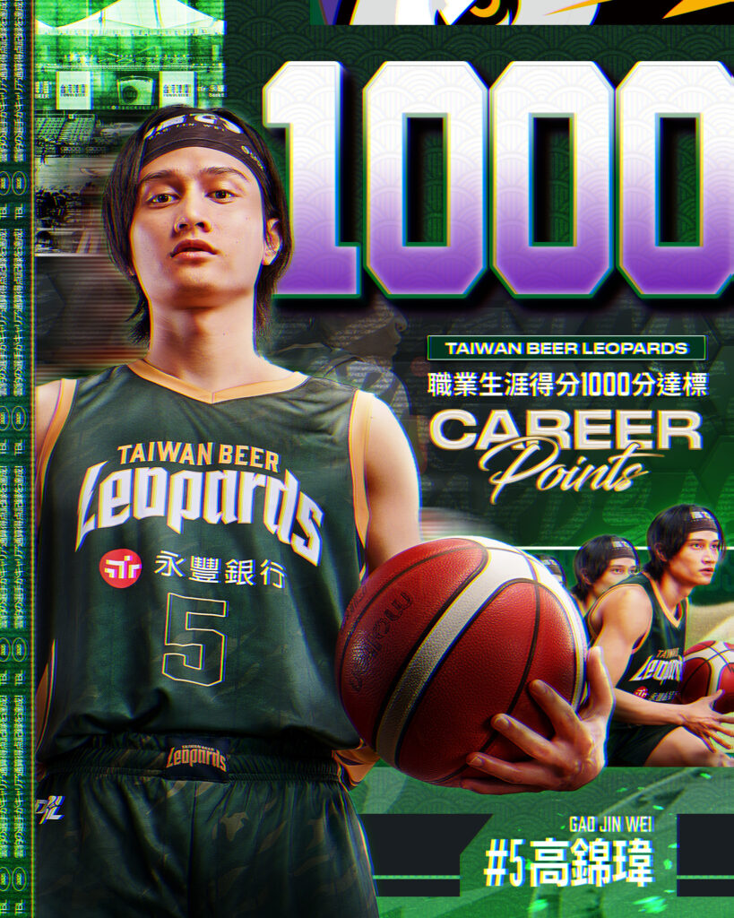 「小高」高錦瑋於2023年加入雲豹後就成為球隊得分主力,前兩季共出賽63場例行賽就累積986分,上週賽季首戰攻下8分後,賽前生涯得分累積達994分,此戰首節剛進行近6分鐘,他就靠著罰球拿下生涯例行賽第1000分,且全場共攻下21分、3助攻3籃板。