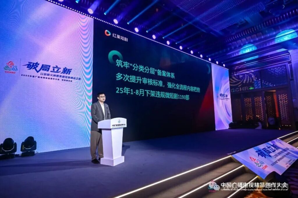 根據論壇分享,過去一年微短劇產業進入高速成長期,從最初的誇張劇情、低成本製作,逐步邁向「品質為王」的新階段。在國家廣播電視總局的監管與指導下,紅果短劇與抖音等平台多次提升內容審核標準,從劇名、畫面、立意到宣傳物料全面把關,嚴格杜絕低俗與導向不良作品,推動創作者回歸劇本本質,強化劇情邏輯與人物深度。