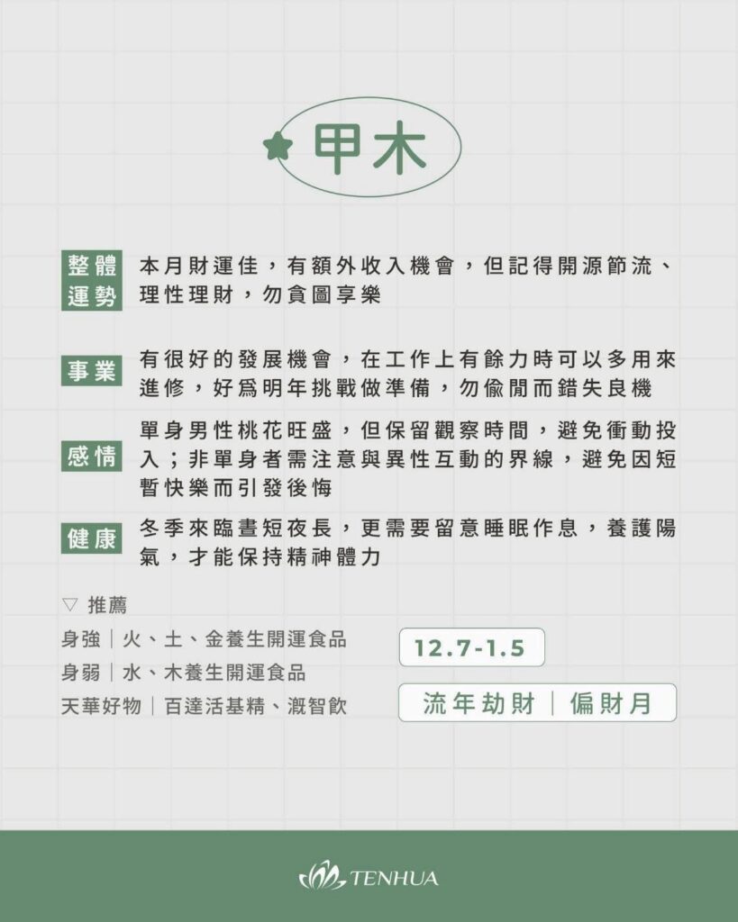 『甲木』走《偏財》大筆錢財 ,有玩樂心及出遊機會!