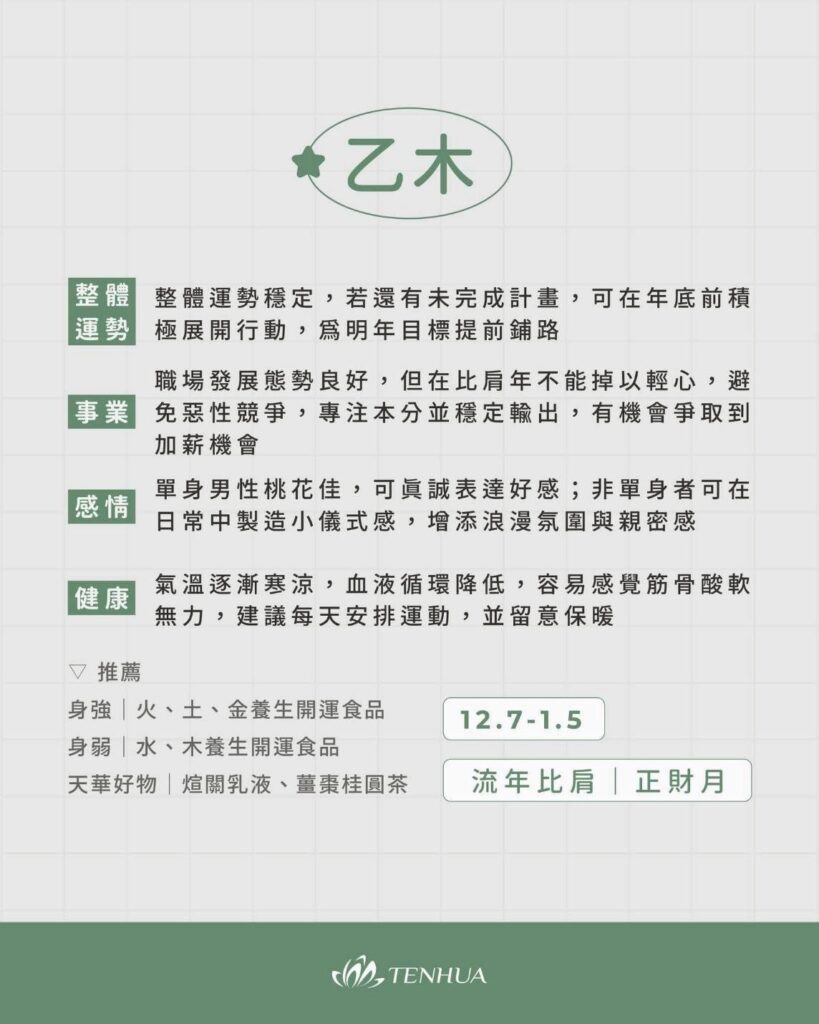 『乙木』:走《正財》穩定財源  ,有歡喜心及出遊機會!