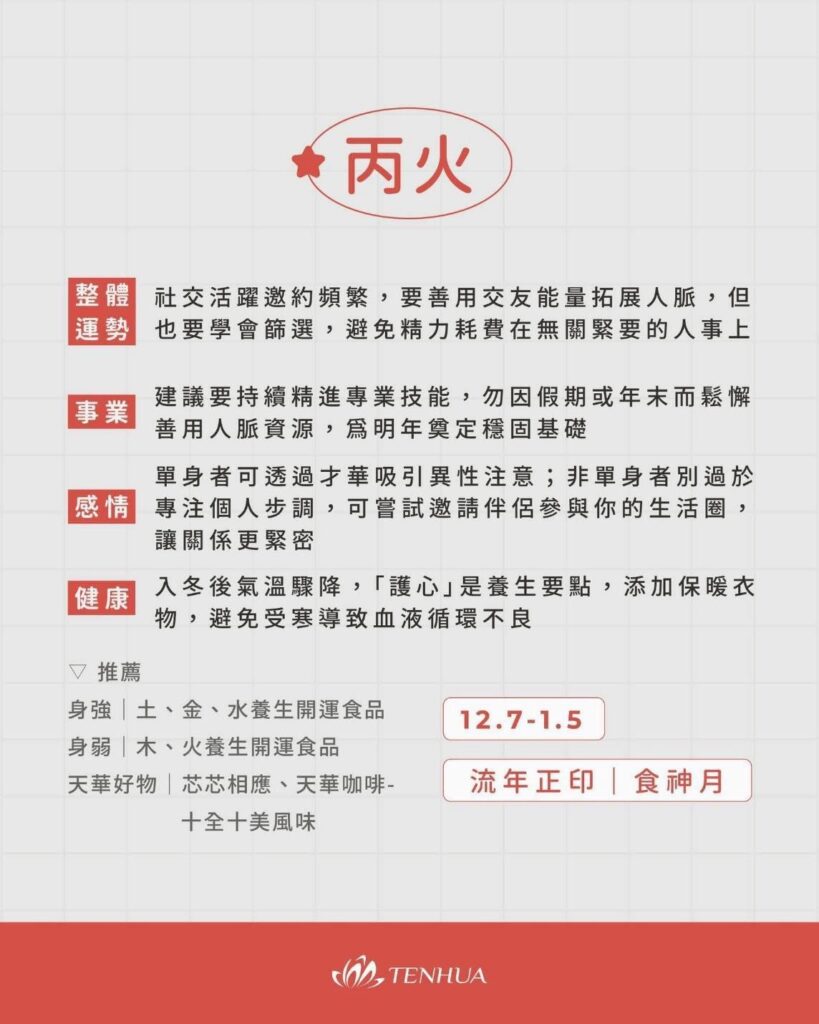 『丙火』:走《食神》樂天安逸 有口福、若命盤有「偏印」要防梟印奪食斷送財根!