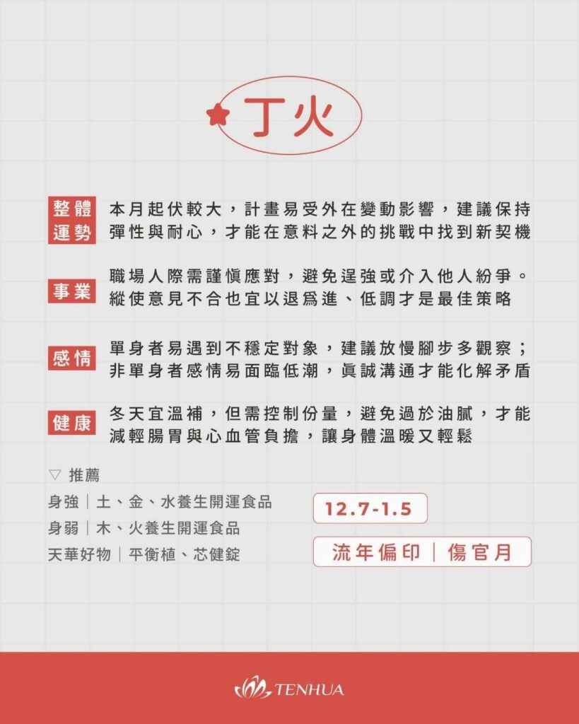 特別注意12/9、19、29、(傷官見官)凶像可以提前使用開運產品或多作天使靈氣冥想讓能量提升,讓心安定來避凶。