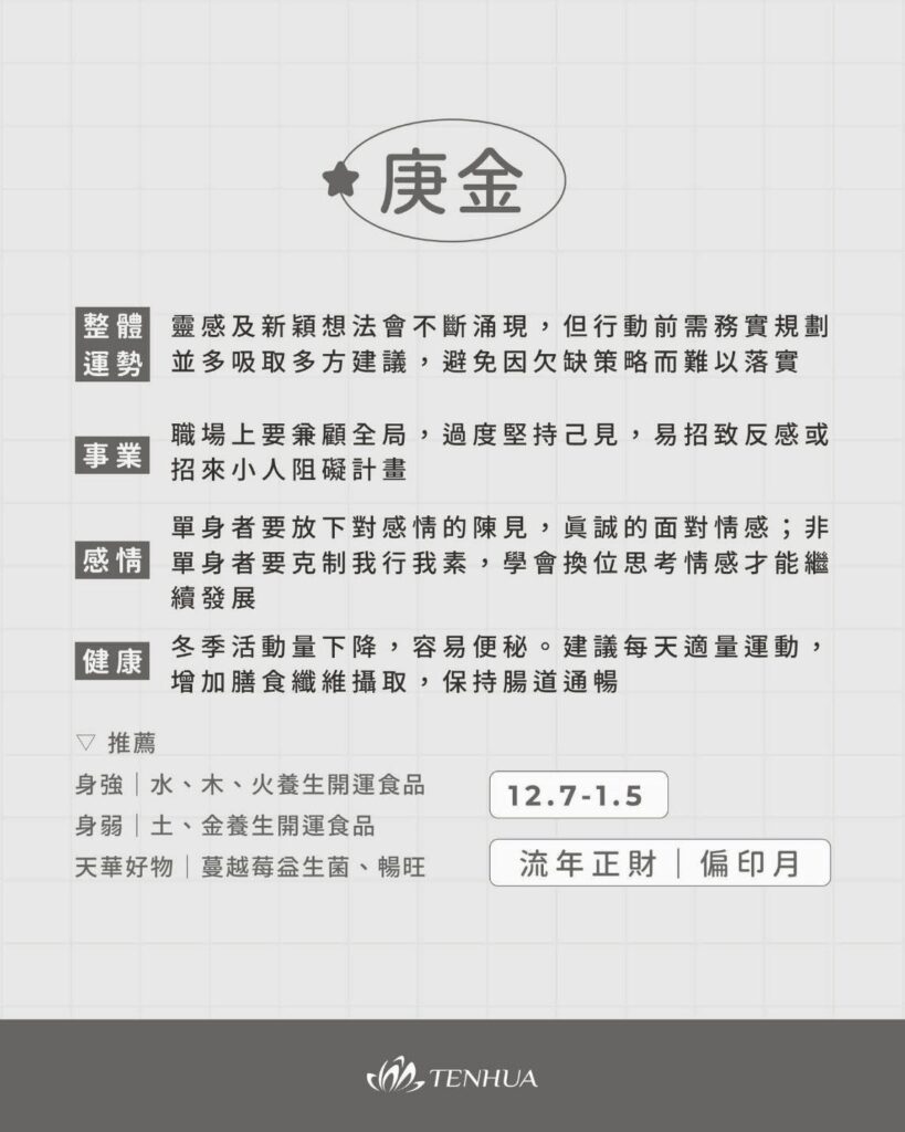 『庚金』走《偏印》反應靈敏若命盤有「食神」要防梟印奪食、斷送財根