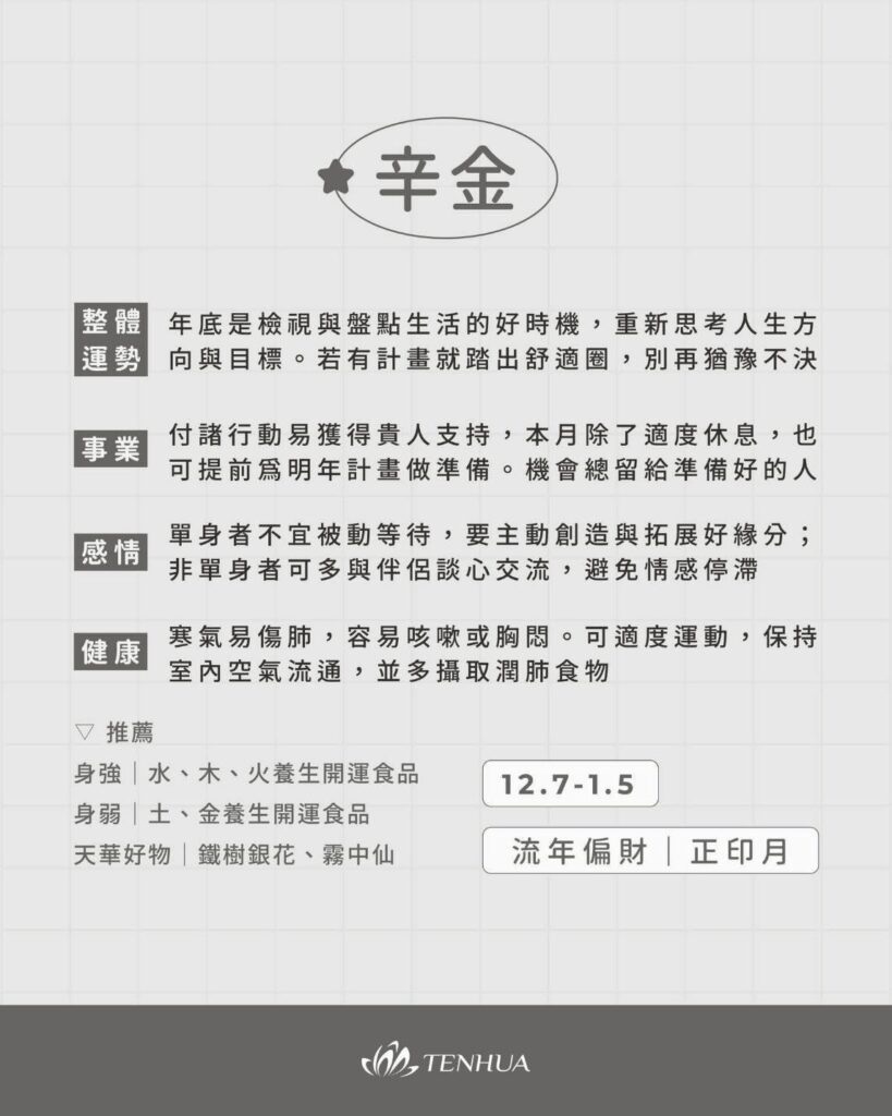 特別注意(殺日:12/6、16、26,傷日:12/11、12/21、12/31)可以提前使用開運產品或多作天使靈氣冥想讓能量提升,讓心安來避凶。
