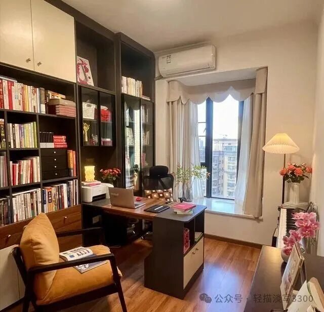 胡歌此次分享的書房以落地窗、懶人沙發和滿牆藏書為主要配置,牆面以米灰色呈現,整體色調簡潔清爽。他的書架上擺放多類型書籍,包括哲學、心理學、建築與旅行等,部分書籍書脊磨損明顯,顯示使用頻繁。室內另可見原木書桌、黃銅檯燈與留聲機,營造出安靜沉穩的閱讀氛圍。