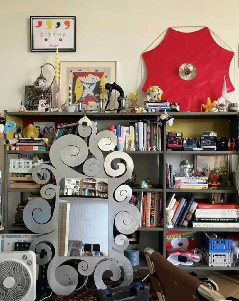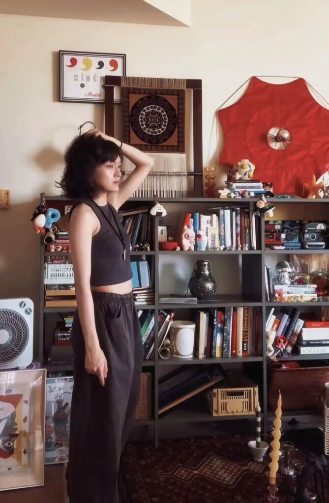 從她公開的家中一隅可以看出,整體風格極具個人性:空間中擺滿藝術品、手工創作、手辦收藏與旅行紀念物,彷彿一座「生活博物館」。乍看雜亂,却在色彩、材質與陳列方式中呈現自然平衡,充滿「雜而不亂」的獨特韻味。