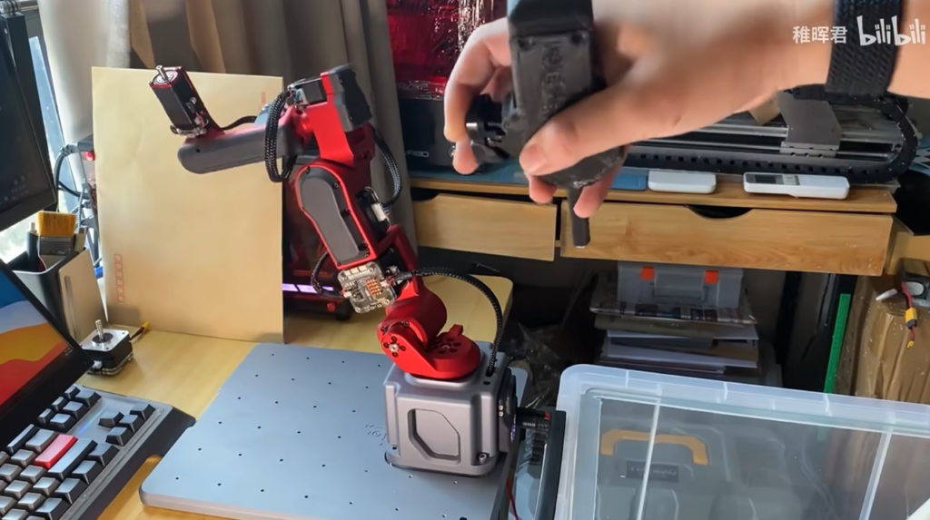 最出名的作品,是名為Dummy的高精度六軸機械臂。他拆解遊戲手柄設計控制器,讓操作者能感受到機械臂抓取物品的真實質感。在視頻中,他操縱機械臂為葡萄縫針,展示了精密交互的可能性。短短八個月,他先後完成自動駕駛自行車與機械臂,速度令人驚嘆。正如一位同行所評價:難就難在都是他一個人完成的。