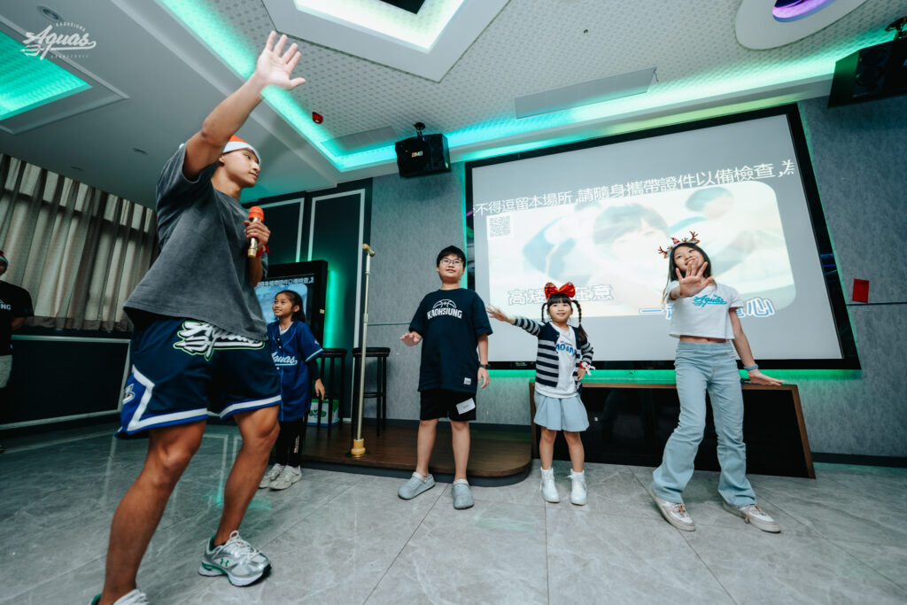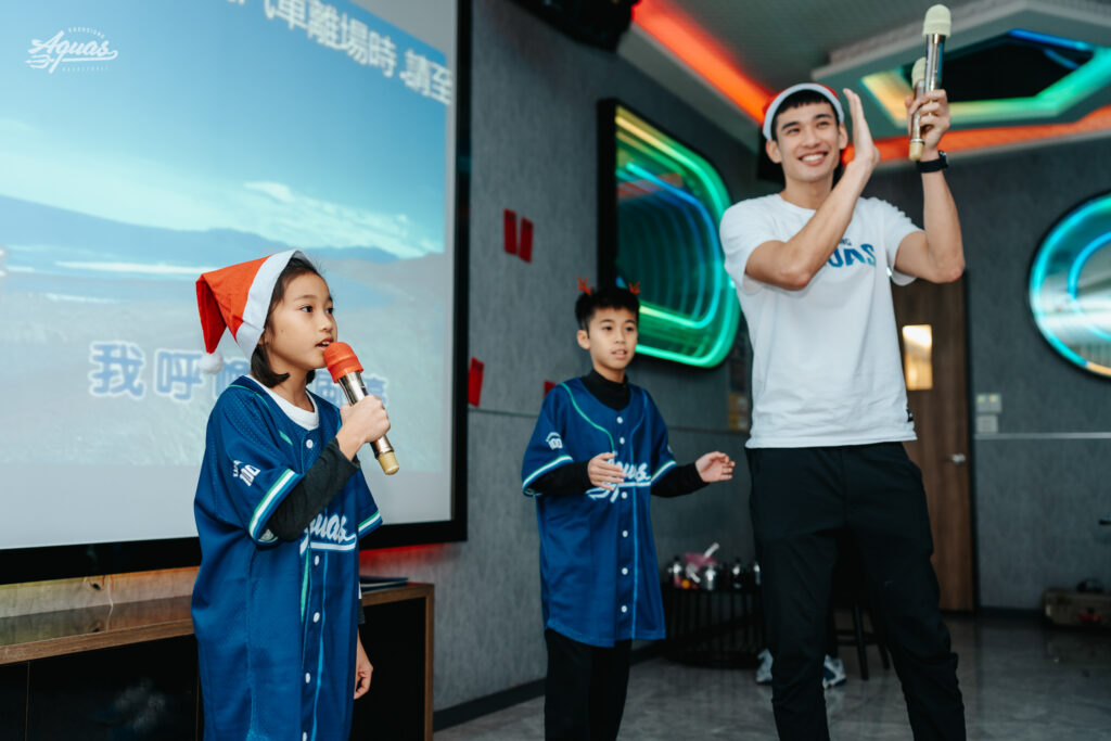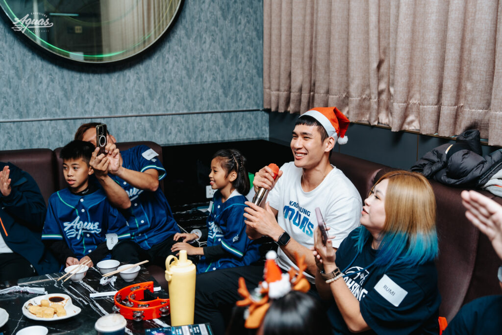 「浪⼈情歌之享⾒你」連續第二年舉辦,吸引近30位神隊友報名參加,更有4組家長帶著小朋友前來同樂。神隊友除了與球員包廂同樂、遊戲互動,領取任務卡闖關還能獲得「享溫馨聖誕紅包」及嗨唱必備澎大海。