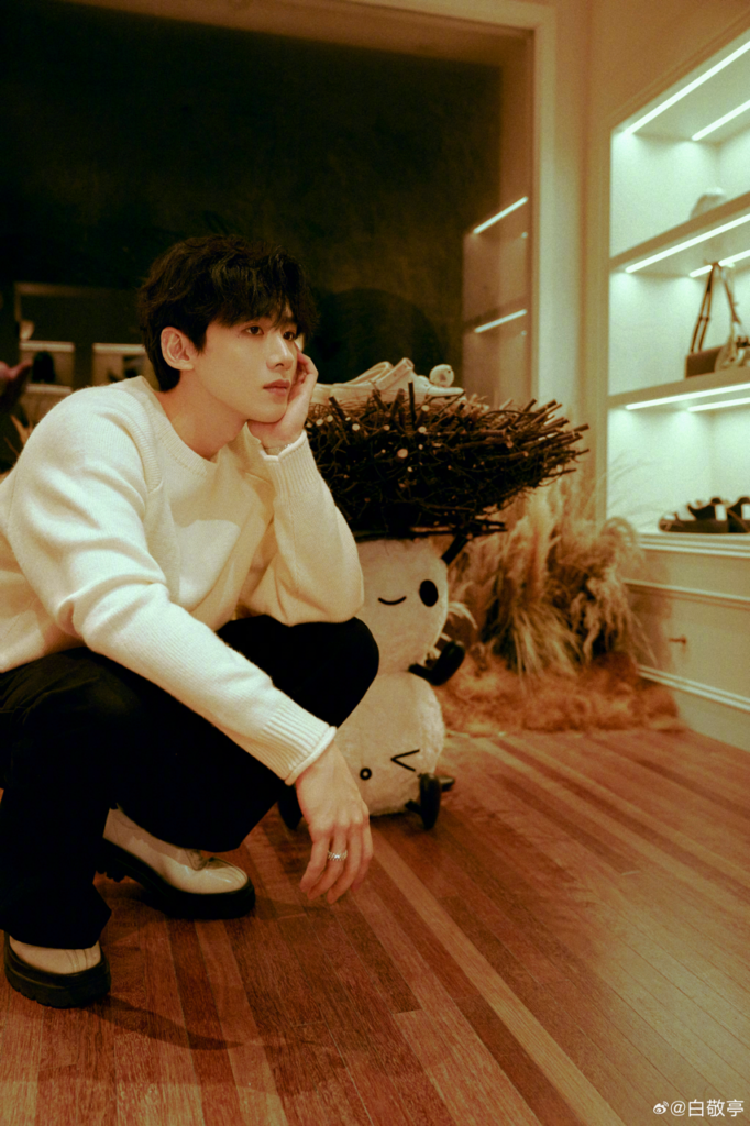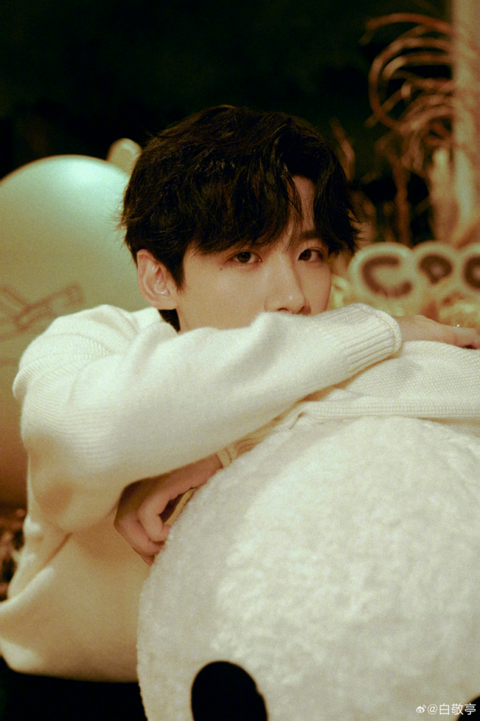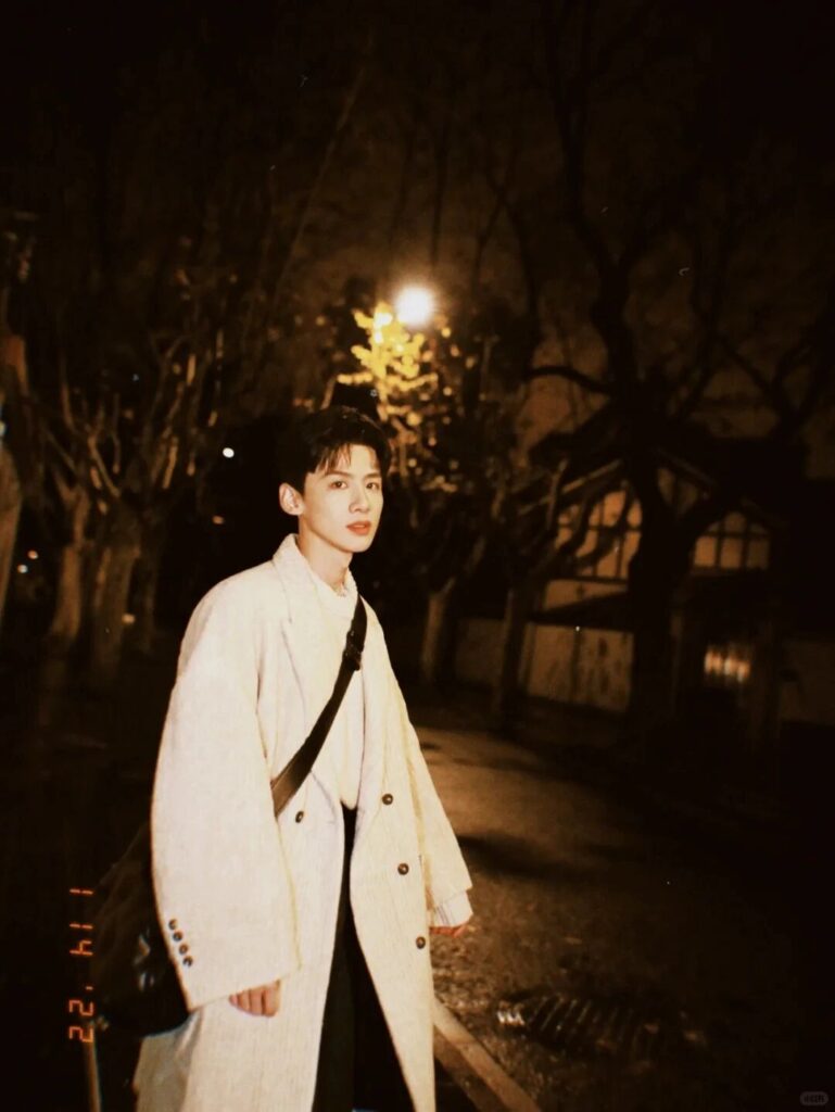 白敬亭的燈芯絨白色長大衣,則巧妙融合高級感與街頭休閒風,斜挎包的搭配讓長款外套更顯輕鬆自在,展現少年感的隨性魅力。