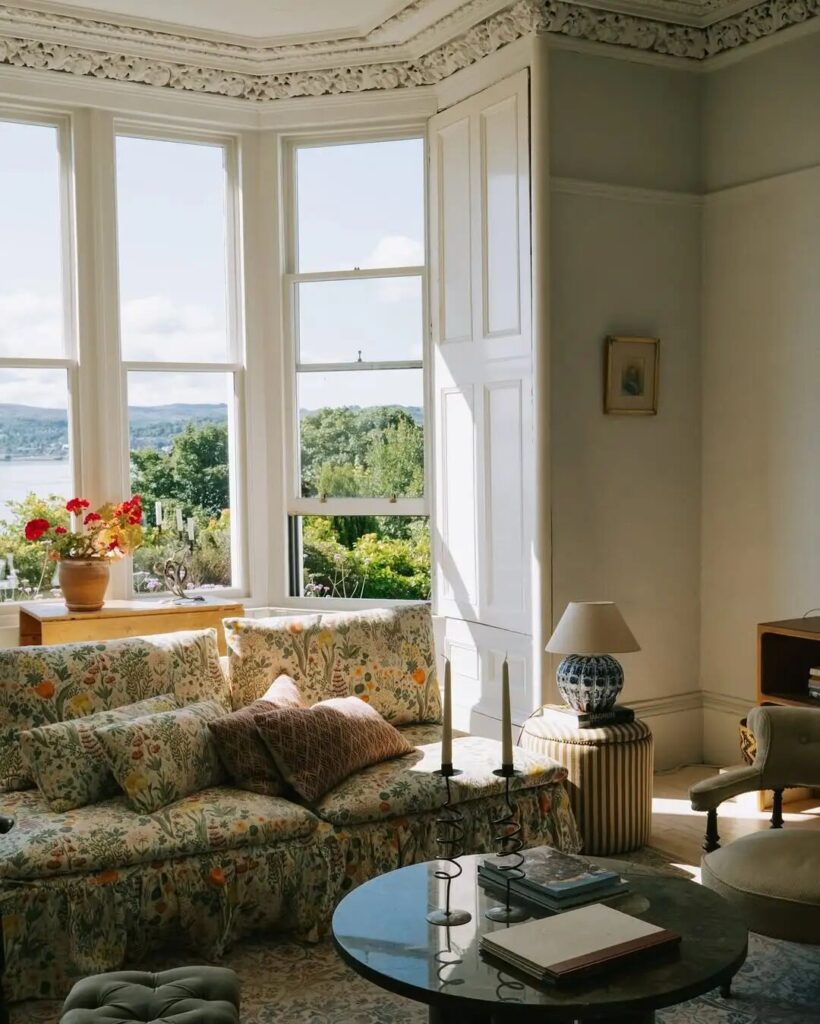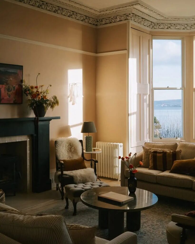 法國生活博主 Patricia Rodi 的家,宛如夢境般浪漫:復古雕花天花板映襯暖色牆面,壁爐旁的絲絨沙發上搭著柔軟針織毯,每個角落都散發著溫暖氣息。推開窗戶,就是無邊的大海,陽光灑入室內,窗邊的綠植與鮮花為家增添生機,讓空間充滿生命力。