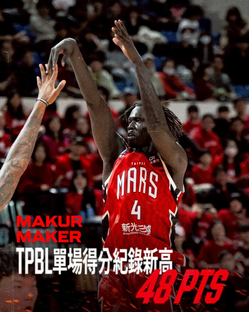 臺北台新戰神今日於主場對上新北國王,戰神此役以單洋將應戰。梅克扛起進攻重任,一夫當關砍下48分突破聯盟單場得分紀錄,比賽末節雙方一路拉鋸,最後8秒激戰至平手,惜最終戰神遭對手絕殺,以96比98惜敗。