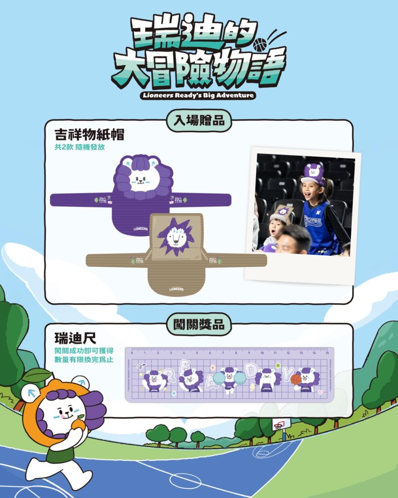 「瑞迪的大冒險物語」主題週期間,新竹縣體育館將充滿孩童的歡笑。3月14日與15日賽前,將由「瑞迪」率領「小小慕獅」帶來超萌大合舞。同時,舞蹈冬令營Lioneers Dance Jr.也將學以致用,連續三天擔任賽前表演嘉賓。現場大螢幕還將展示由30位孩童參加「瑞迪畫畫比賽」的原創作品,展現孩子們眼中百變的瑞迪風格。